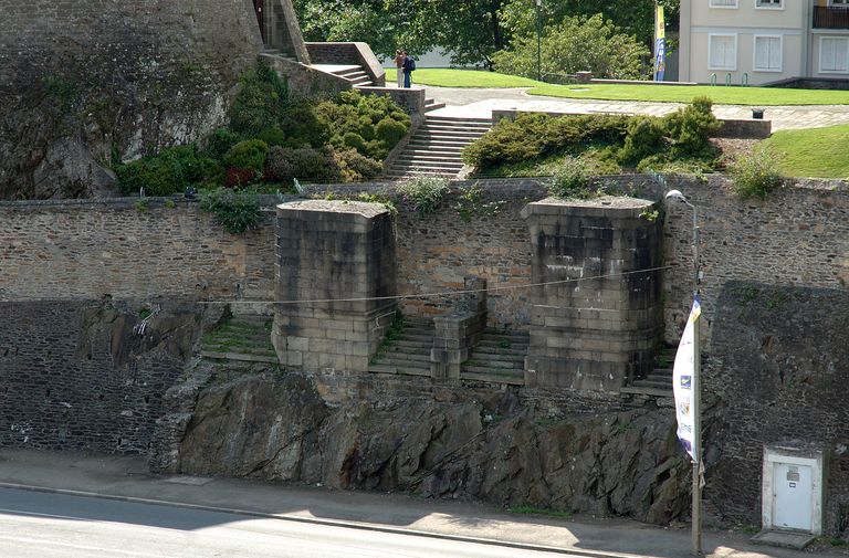 Vue des vestiges du pont tournant ou Pont National de Brest : pile ouest du pont au pied de la tour TanguyImmatriculation