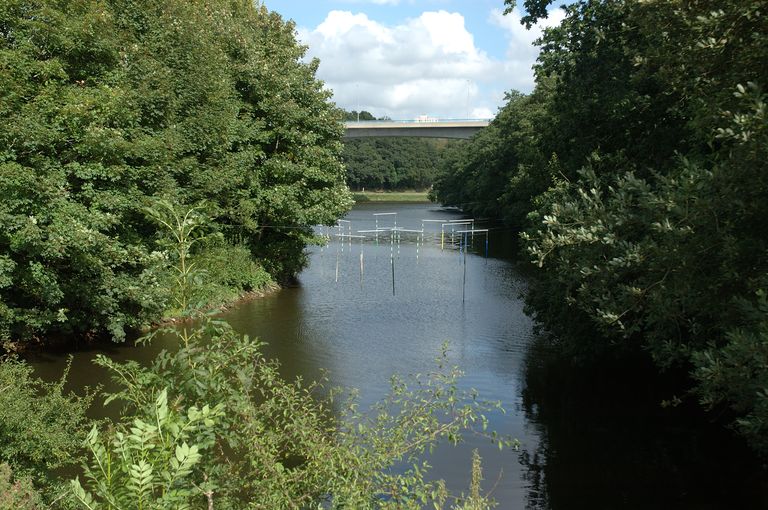 Vue de la Penfeld à la Villeneuve : espace réservé aux activités nautiques, ici KayakImmatriculation