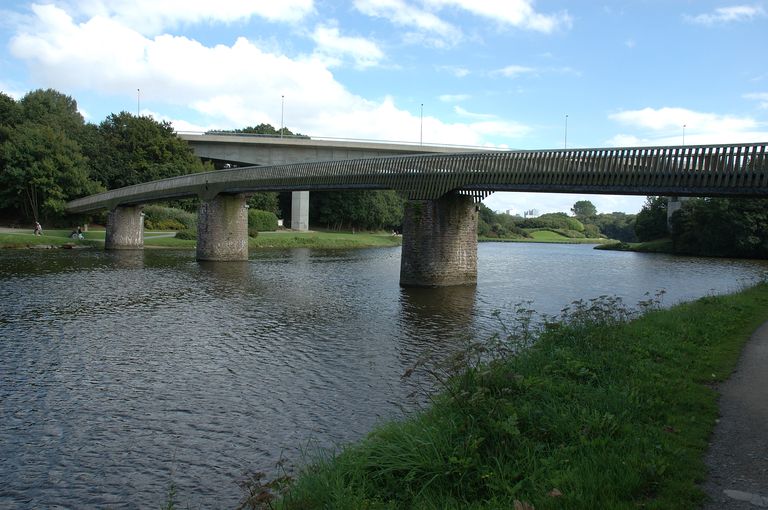 Vue de la Penfeld à la Villeneuve : pont de la Villeneuve et passerelle des Pupilles. Des promenades ont été aménagées sur les rives de la PenfeldImmatriculation