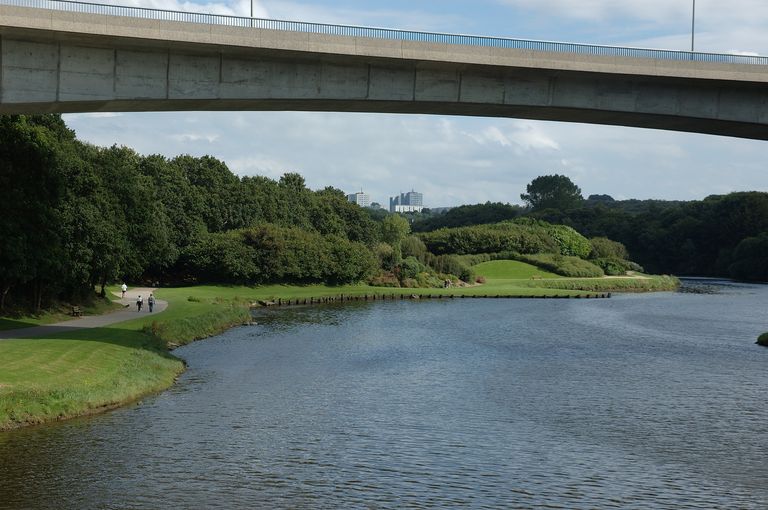 Vue de la Penfeld à la Villeneuve : pont de la Villeneuve. Des promenades ont été aménagées sur les rives de la Penfeld : Terrasses des ForçatsImmatriculation