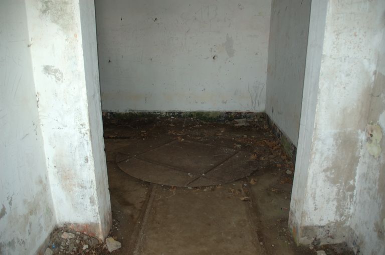 Vue de l'abri pour projecteur de 150 cm du Portzic : intérieur, plaque de translationImmatriculation
