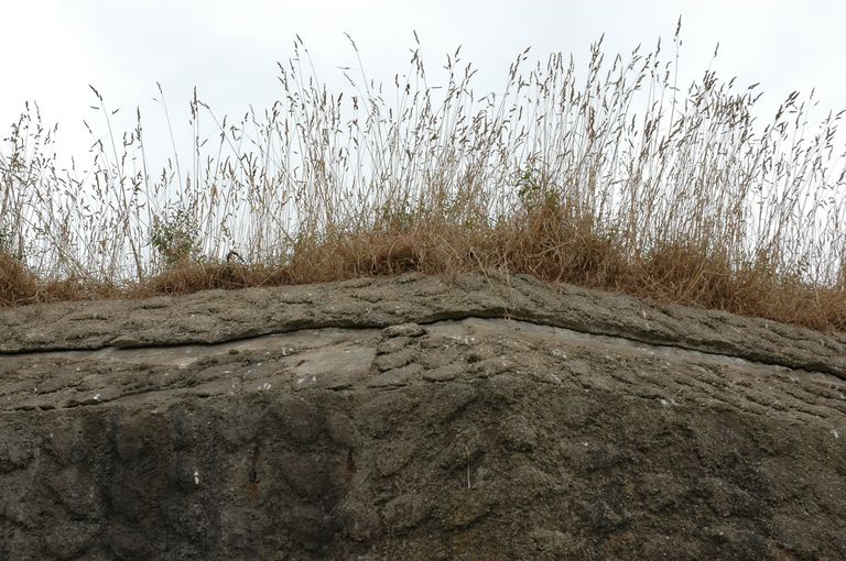 Vue de la batterie lourde de Rumadiou (4 canons de 76,2 mm FK 39 dont 2 sous casemates de type 669) : détail du traitement du béton pour le camouflageImmatriculation