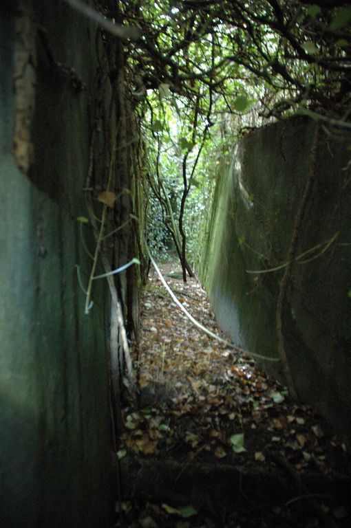 Vue d'un ensemble fortifié de la Presqu'île de Kermorvan constitué d'un Tobrouk pour mortier de 80 mm, tranchée bétonnée et abriImmatriculation