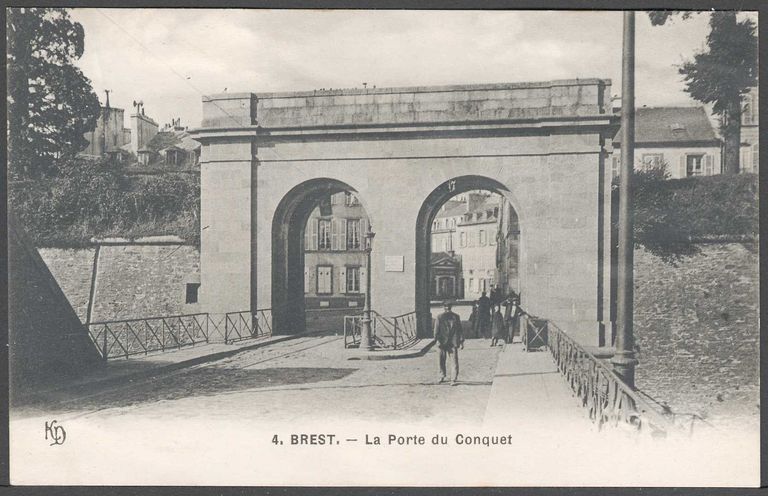 Vue générale de la porte Foy à Brest, carte postaleImmatriculation