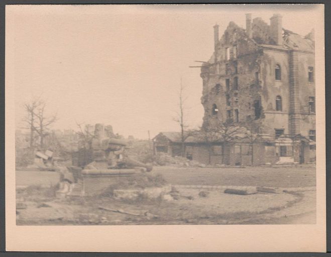 Vue de la caserne des Matelots alors caserne du 2ème Dépôt de la flotte après les combats de la Libération, vers 1944Immatriculation