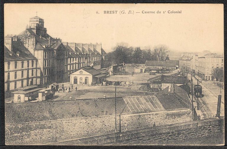 Caserne pour les troupes de la Marine puis caserne du 2ème Régiment de l'Infanterie Coloniale (1901-1944) surnommée caserne Fautras (détruite), Quartier intra-muros de la rive gauche (Brest),