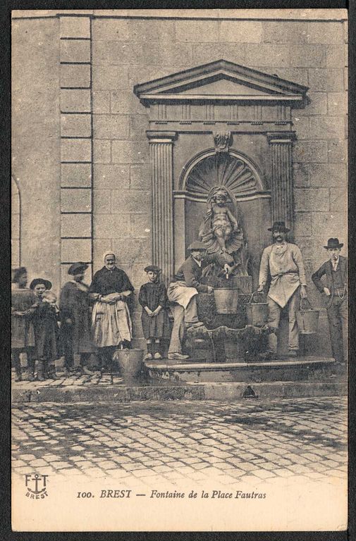 Vue de la fontaine de la place Fautras à Brest, carte postaleImmatriculation