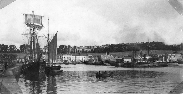 Vue de Brest : le port de commerce. En arrière plan : le Cours Dajot. Carte postaleImmatriculation