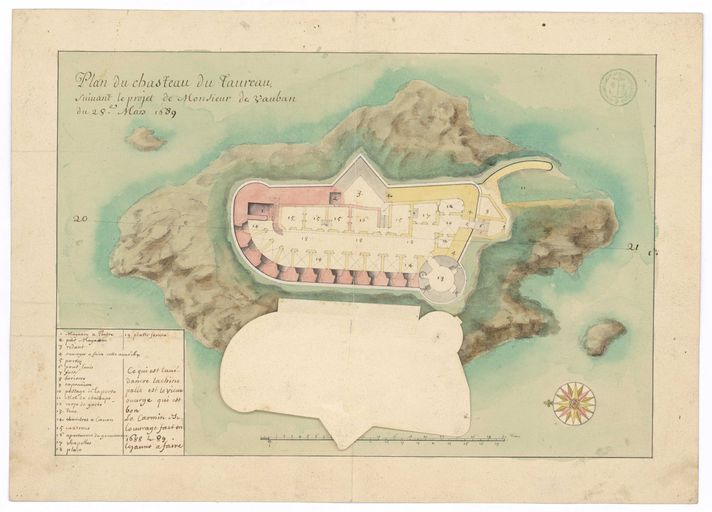 Plan du château du Taureau suivant le projet de monsieur de Vauban, rez-de-chaussée, 28 mars 1689Immatriculation