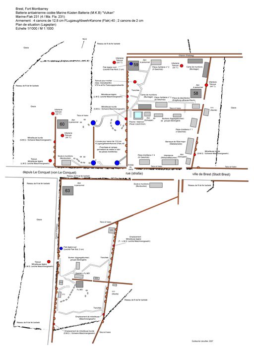 Batterie antiaérienne baptisée Vulkan (B 339) et ensembles fortifiés (B 58-60 et B 63), Avenue de la 1ère Division Française Libre (Brest),
