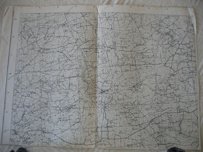 Carte allemande des ensembles fortifiés du groupe défensif côtier de Saint-Renan codé Re (Re 67 - 69 ; Re 78 ; Re 84 - 87 ; Re 310 ; Re 312 - 313) et de la Festung Brest codée B (B 318 - 322)Immatriculation