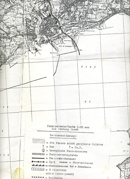 Carte allemande des obstacles antichars de la Festung Brest (Panzerabwehr-Karte, 1:25000 der Festung Brest)Immatriculation