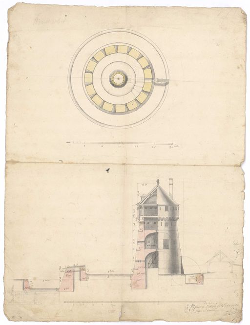 Collection Nivart. MS144_531. Projet de tour côtière pour Belle-Isle (?). Plan, coupe et élévation. Copie (?) d´un dessin sign. Vauban. 14 septembre 1685. Plan, support papier, 0,602 x 0,451 mètre, 4e quart 17e siècle, 14 septembre 1684.