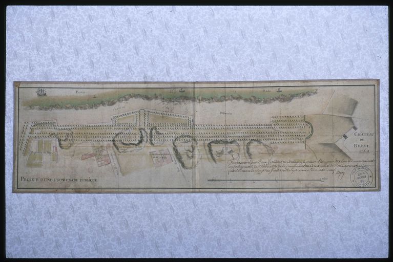 Plan du projet de promenade publique de Brest approuvé par l'Intendant de Bretagne Dagay, 1769Immatriculation