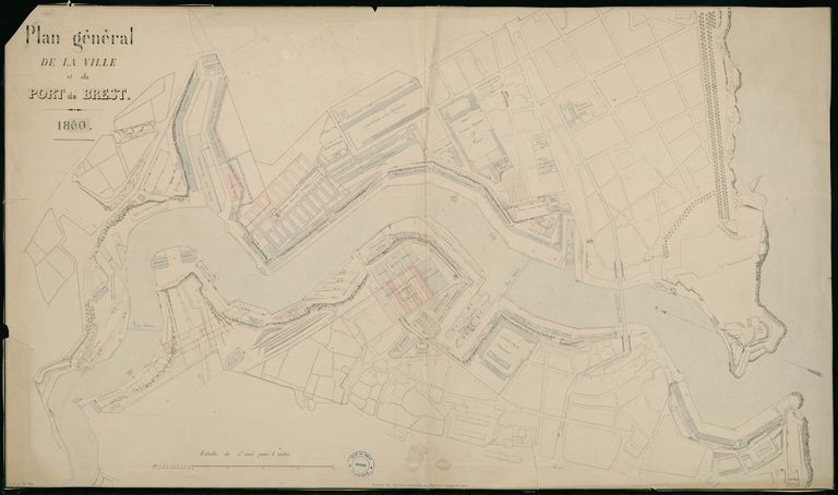 Plan général de la ville et du port de Brest en 1853 complété et mis à jour par la Marine en 1860Immatriculation