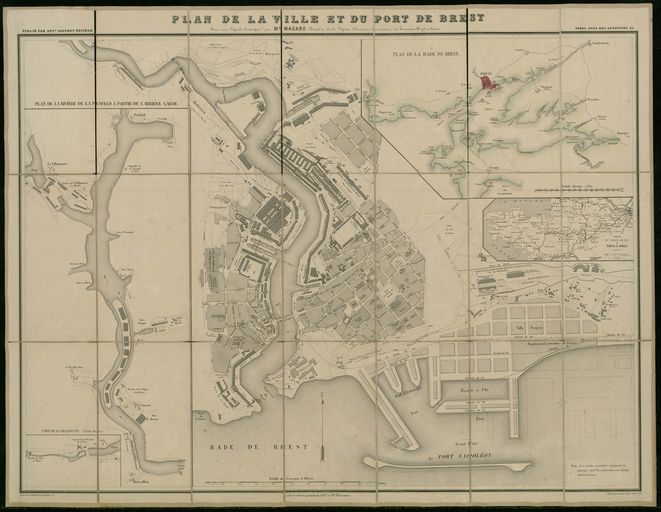 Plan de la ville et du port de Brest incluant les plans de la rade Brest, de la rivière de Penfeld à partir de l'Arrière-Garde et de l'usine de la Villeneuve, vers 1861-1865Immatriculation
