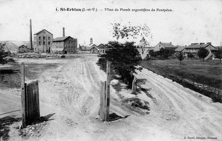 Vue sur le coron au deuxième plan à droite durant les années 1910 (Coll. Part., Charles Seigneur, Pont-Péan)Immatriculation