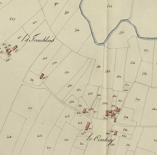 Le Coudray, plan masse et de situation, extrait du plan cadastral de 1812, parcelles 571, 572Immatriculation