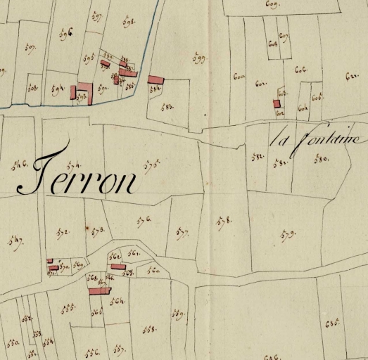 Extrait du cadastre de 1813, parcelles 593, 594Immatriculation