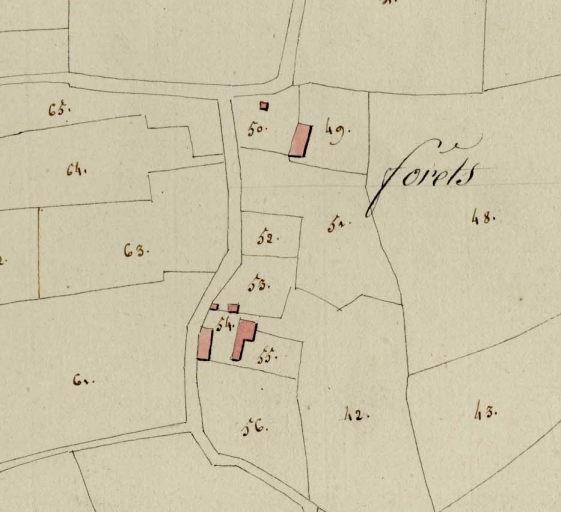 Extrait du cadastre de 1813 parcelles 53-55Immatriculation
