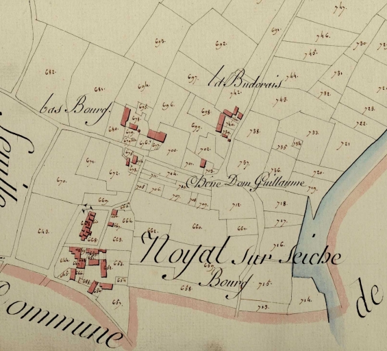 Plan masse et de station, extrait du cadastre de 1813, bourg et du Bas Bourg de NoyalImmatriculation