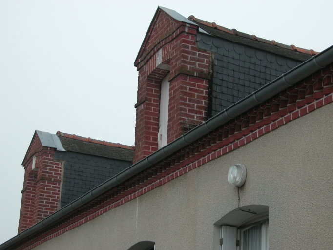 Détails, lucarnes et génoise en briquesImmatriculation