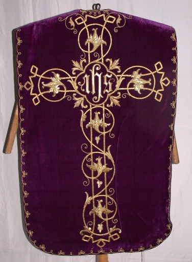 Ornement violet : chasuble, étole,