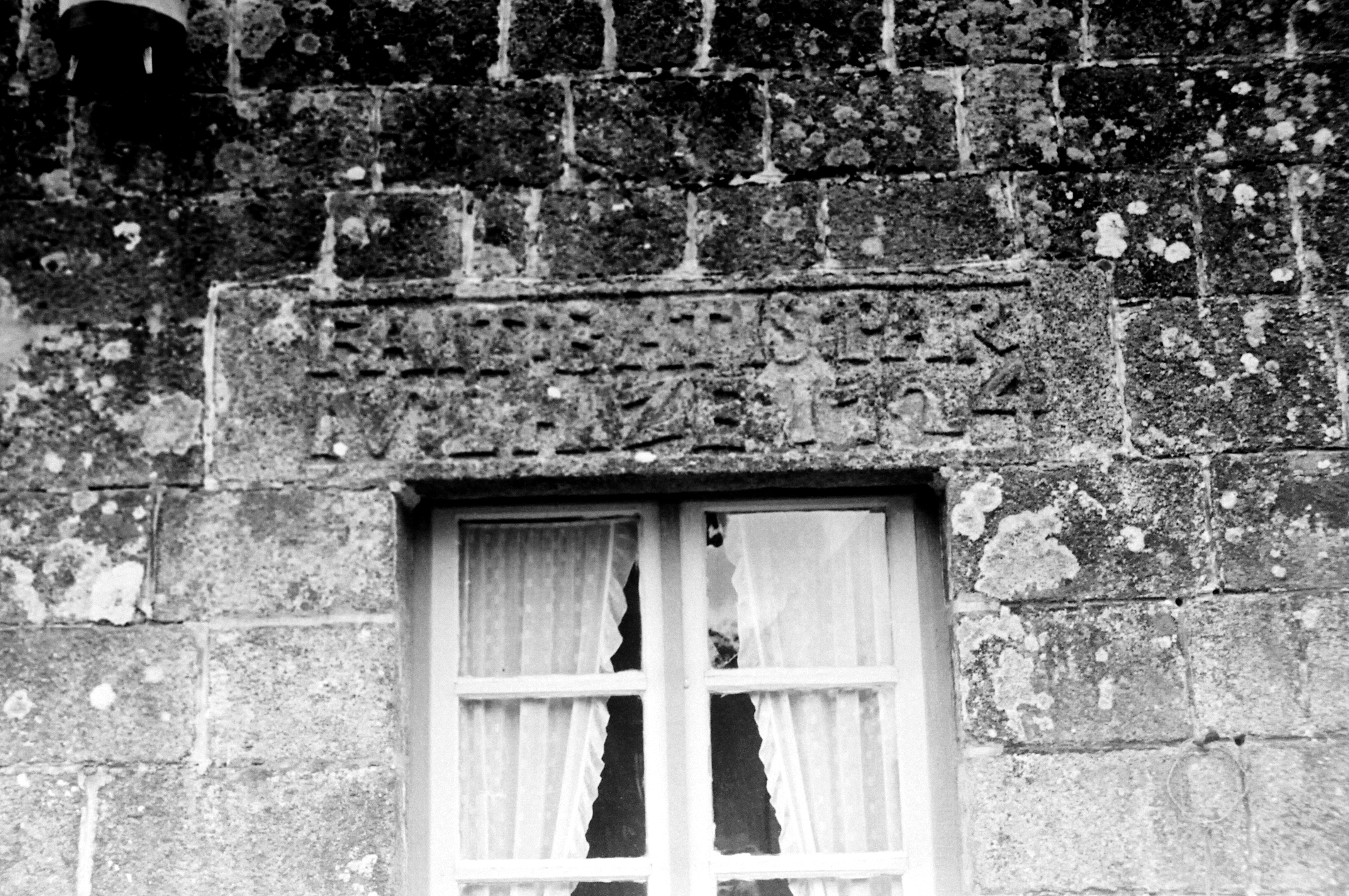 Landéan, La Royelle : détail d'un linteau avec inscriptionsImmatriculation