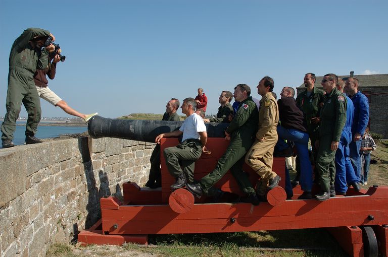 Vue de l'opération d'hélitreuillage des canons du fort du Petit Bé par la Marine Nationale et l'équipage du Super Frelon de la flottille 32 F de la base navale de Lanvéoc-Poulmic, mardi 11 septembre 2007Immatriculation