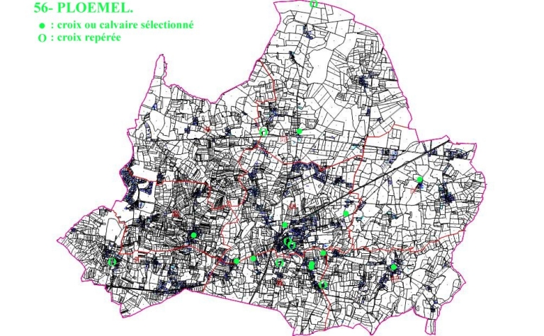 Plan de localisation des croix et calvaire sélectionnés ou repérésImmatriculation