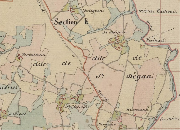 Plan cadastral 1839, plan d'assemblage, détail : Saint-Degan, Saint-Guérin. AD Morbihan 3P 63.Immatriculation