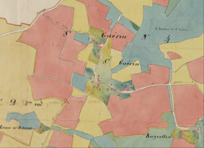 Plan cadastral 1839, plan d'assemblage de la section P3. Saint-Guérin. AD Morbihan 3P 63.Immatriculation
