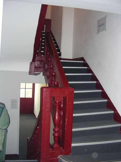 Escalier, vue prise du rez-de-chaussée.Immatriculation