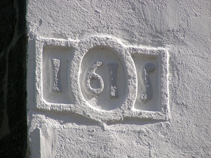 Date d'édification portée dans un cartouche, façade sud.Immatriculation