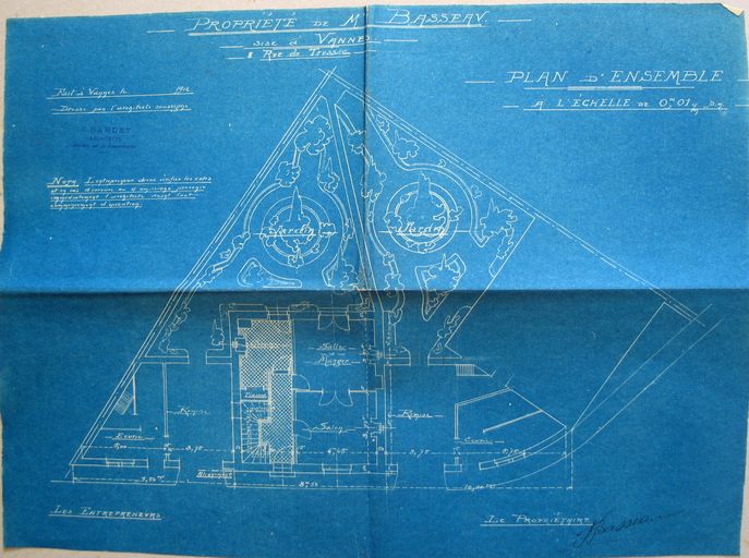 Plan de masse par Jules Bardet, 1912. AM Vannes 5 I 162.Immatriculation