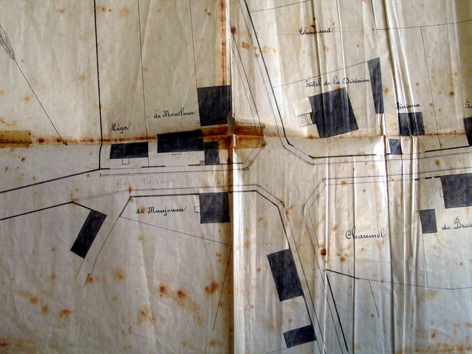 Plan du quartier Rabu dressé par l'architecte de Lamarzelle, détail, 23 février 1881. AM Vannes 1 O 216.Immatriculation
