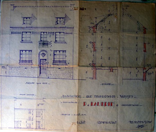 Elévation et coupe par Perrin, juin 1935. Archives privéesImmatriculation