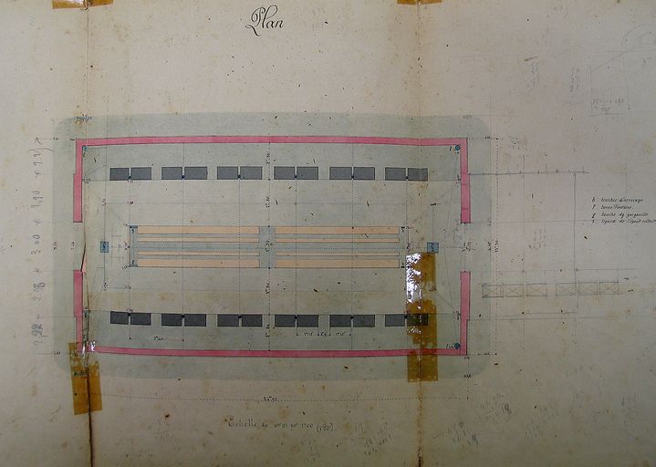 Plan de nivellement projeté de la halle par de Lamarzelle, 12 août 1879. AM Vannes 1M197.Immatriculation