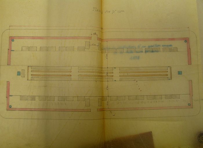 Plan de la halle avec portes latérales par Muiron, vers 1901. AM Vannes 1M197.Immatriculation