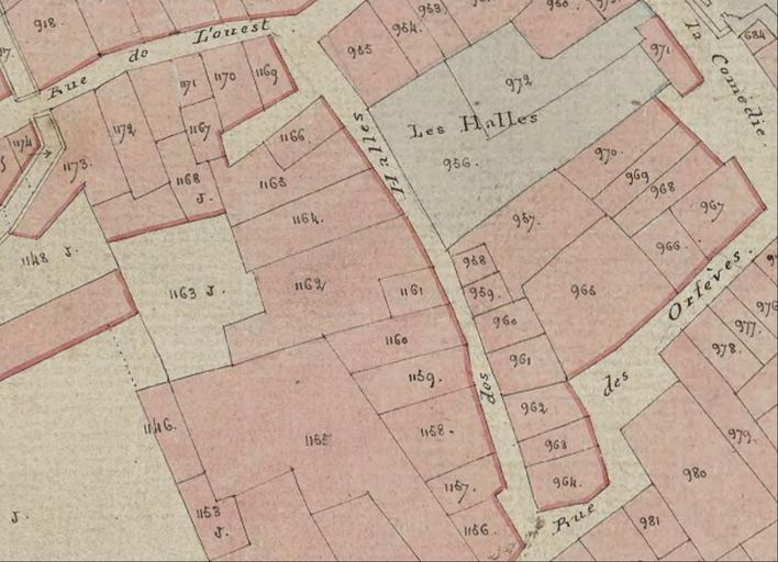 Plan cadastral 1809. Section I3 : intra-muros, détail. AD Morbihan 3P.Immatriculation