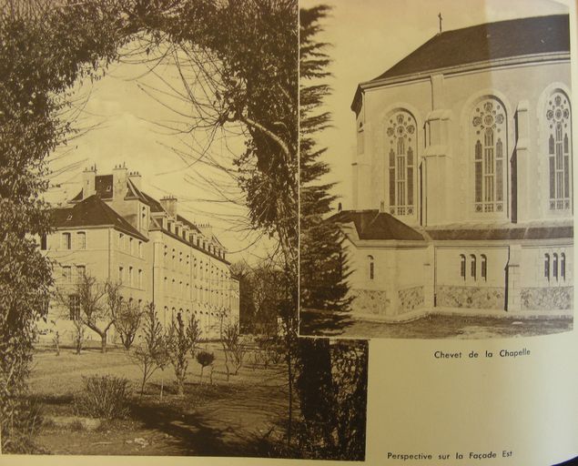 Grand Séminaire : façade est et chevet de la chapelle, 1937. Dans : "Le Grand Séminaire", 1937. Archives de l'Evêché de Vannes Y5.Immatriculation