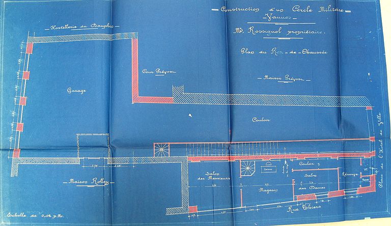 Construction d'un cercle militaire : plan du rez-de-chaussée par Lafont, 1910. AM Vannes 5I162.Immatriculation
