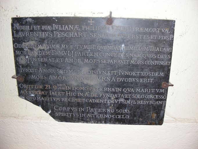 Cloître, plaque funéraire de la sépulture Peschart.Immatriculation
