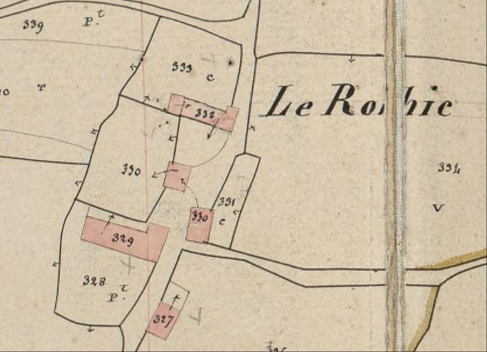 Plan cadastral 1844, section D2. AD Morbihan 3 P 297/35.Immatriculation