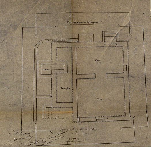 Plan des caves et des fondations par Le Fèvre, 1914. AM Vannes 5I162.Immatriculation