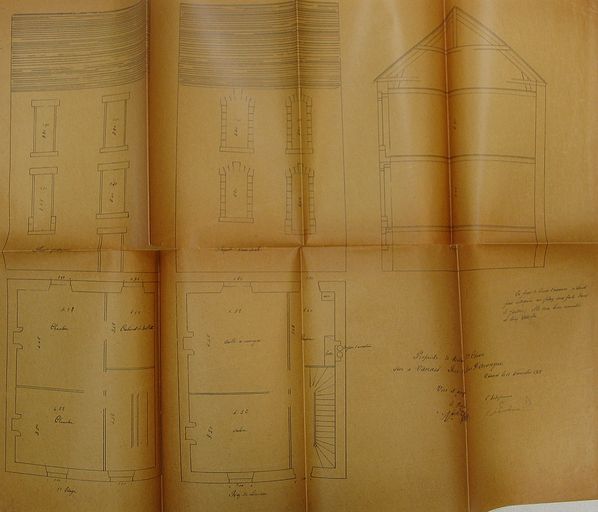 Elévations, plans et coupe de la maison Chevé, 1913. AM Vannes 5I162.Immatriculation