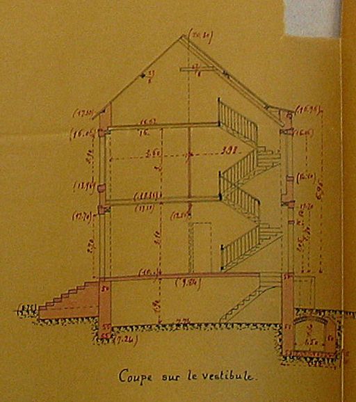 Coupe sur le vestibule de la maison Huchan, 1910. AM Vannes 5I162.Immatriculation