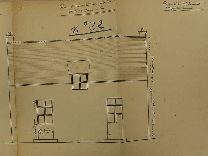 Elévation de la maison de monsieur Lemenach, façade postérieure, 1939. AM Vannes 5I162.Immatriculation