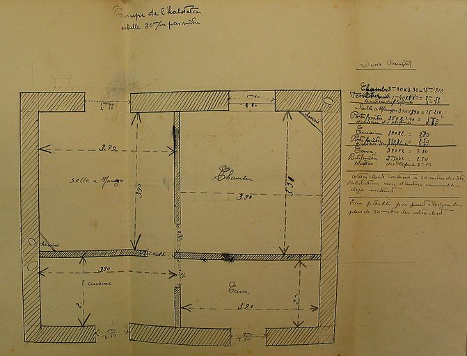 Plan au sol de la maison de monsieur Lemenach, 1939. AM Vannes 5I162.Immatriculation