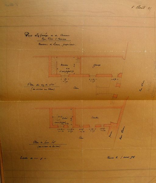 Propriété de Limur : projet de construction, garage et bureaux pour le rez-de-chaussée et le sous-sol, 1925. AM Vannes 5I162.Immatriculation
